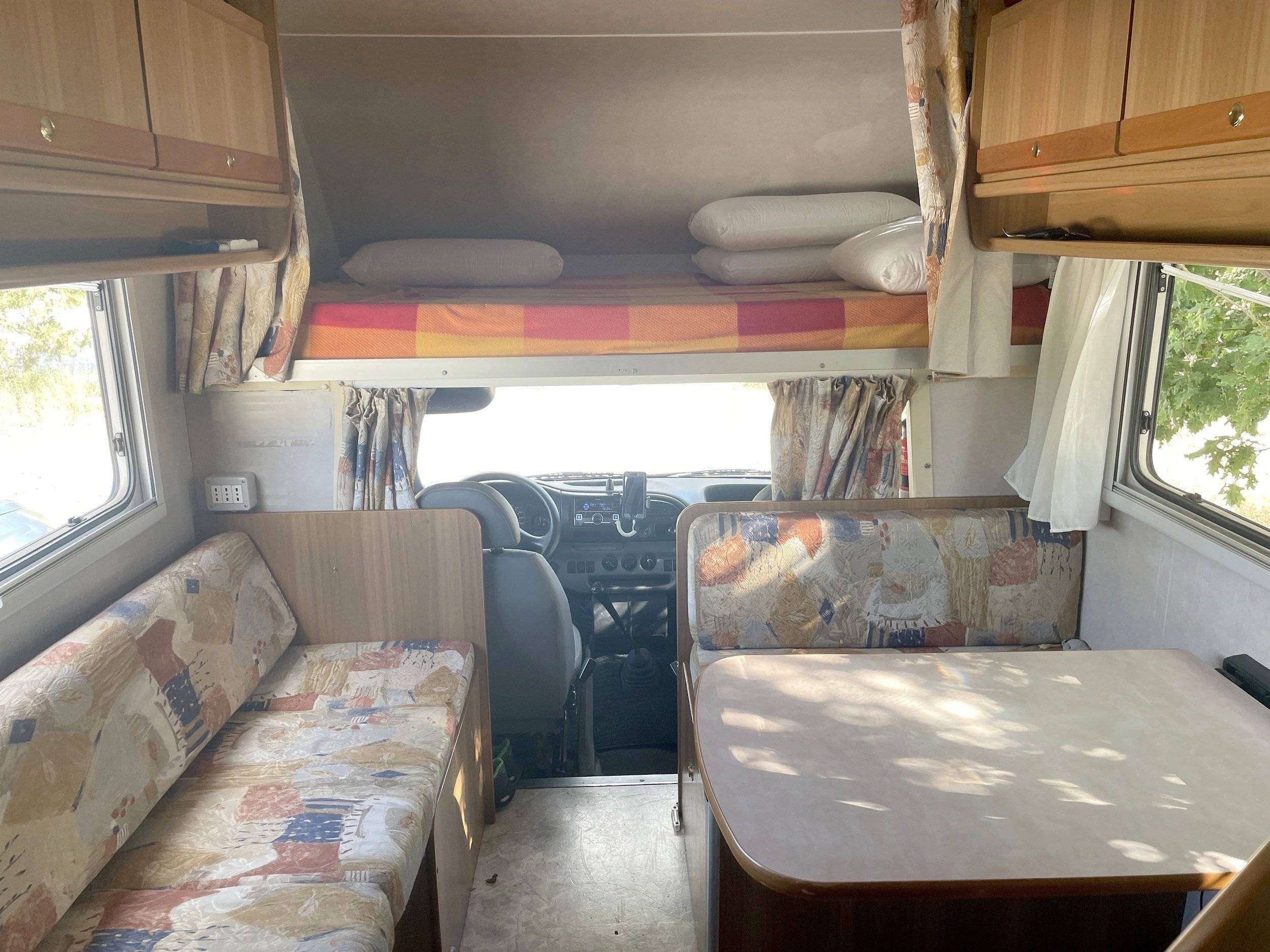 Camper mansardato Rimor Europeo 78 su meccanica Ford Transit 2.5 td sette posti viaggio, sette posti letto di cui cinque sempre pronti (due letti a castello ognuno con la sua finestra e con la sua luce),dinette quattro posti, pannello solare, inverter, tendalino e portabici per tre biciclette. Bagno con doccia separata, serbatoio dell'acqua da 150 lt,vano bombole con due bombole del gas,cucina due fuochi. Qualche dettaglio tecnico: Pompa del gasolio e turbina revisionata nel 2023,cinghia distribuzione sostituita, batteria dei servizi nuova. IMPORTANTE! Il camper va riconsegnato in ordine e con tutto quello che c'è al suo interno al momento della condivisione, con il pieno di carburante, pieno d'acqua, scarico acque chiare vuoto e wc chimico pulitori caso contrario saranno applicate le seguenti penali: Wc chimico non svuotato 50 Euro Acqua potabile non pieno: 5 Euro Mancato scarico acque reflue: 15 euro Presenza di rifiuti e sporcizia: 80 Euro. Se viene infranto il divieto di fumo: 50 Euro Presenza di animali domestici: 50 Euro. Il camper va ritirato entro le 10.30 e riconsegnato entro le 18.00,salvo casi particolari definiti in fase di prenotazione,in caso contrario sarà applicata una sanzione di 10 Euro l'ora a partire dalla prima ora di ritardo Se vuoi dare una prima occhiata al camper puoi seguirmi su TIK TOK al profilo I'GIRELLONE Approfitta dei nostri servizi compresi nel prezzo (dettagli nella sezione tariffe) per vivere esperienze uniche con le persone che ami di più! Possibilità di viaggiare anche solo per un weekend