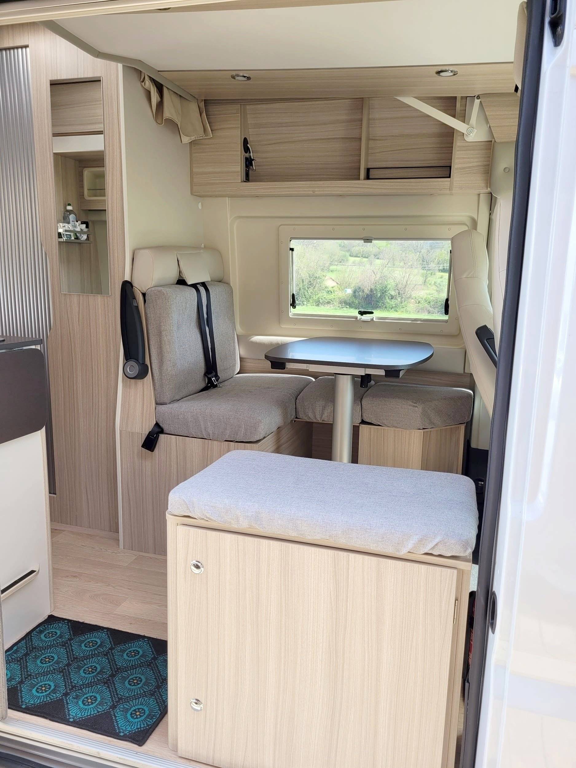 Boris est un fourgon de 2023, agréable à conduire (2.3L - 140CV) et assez maniable malgré sa taille (L=6.36m & h=1.90m). Il est équipé d'un régulateur de vitesse, d'une climatisation à l'avant, d'un autoradio carplay et d'une caméra de recul.