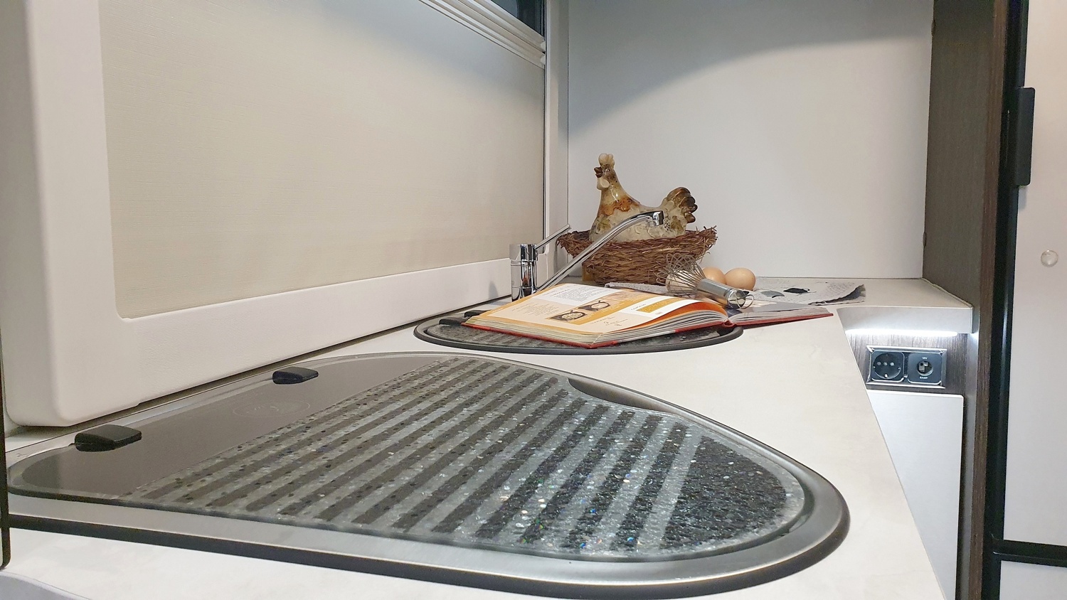 Es una Autocaravana pequeña con la medida de una Camper furgoneta, tiene un baño y ducha separada, el salón es muy amplio, que pueden comer 6 personas, una cocina también amplia y cómoda.