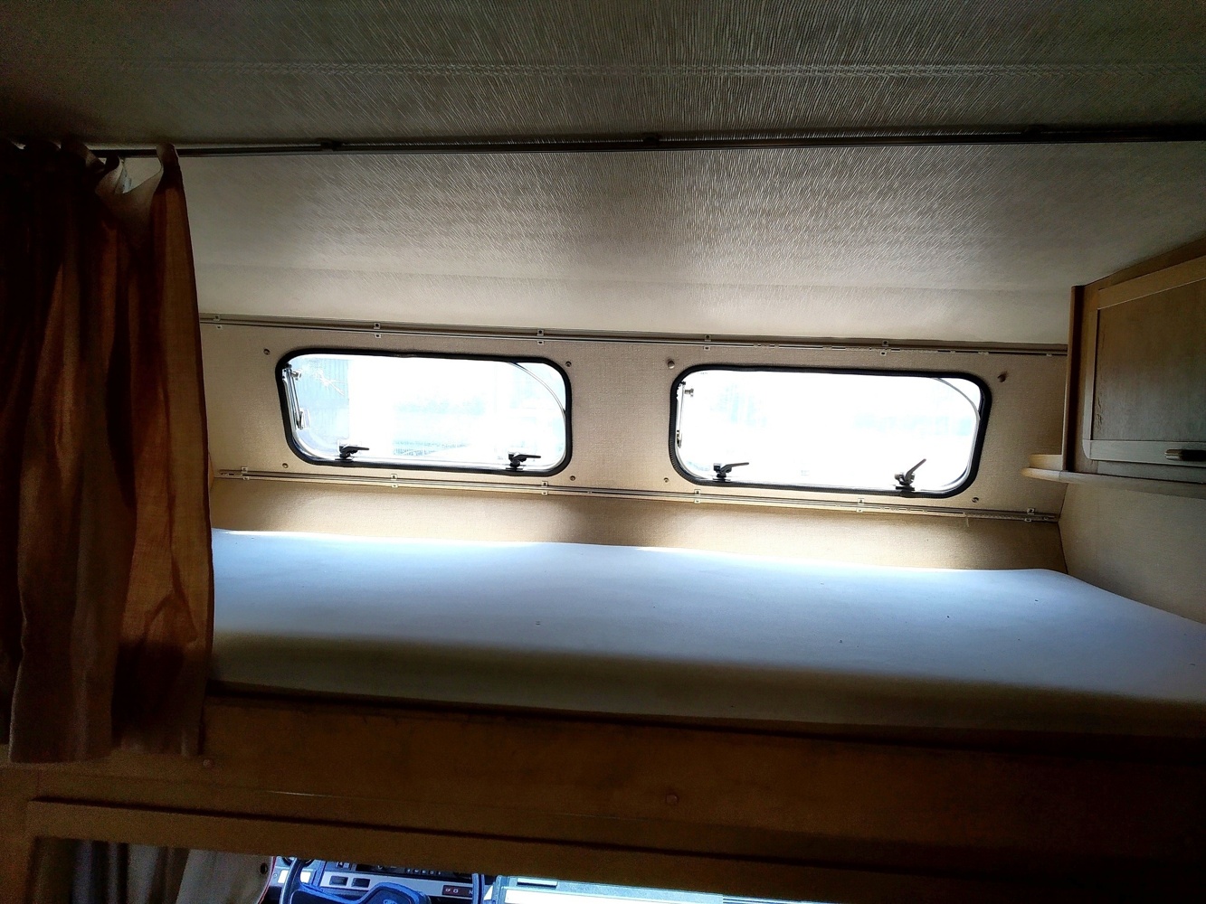 Situé à l'avant au dessus du poste de conduite et accessible via une échelle. Très confort, ce lit permet aussi de conserver de l'espace de vie.